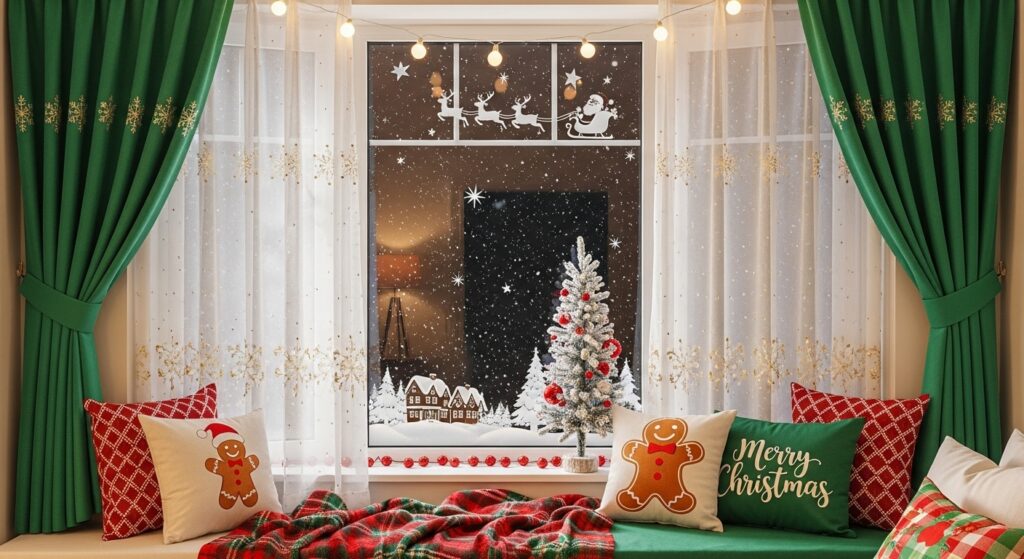 Add reusable snowflake decals or frost-effect stickers to make your windows shine with festive magic.