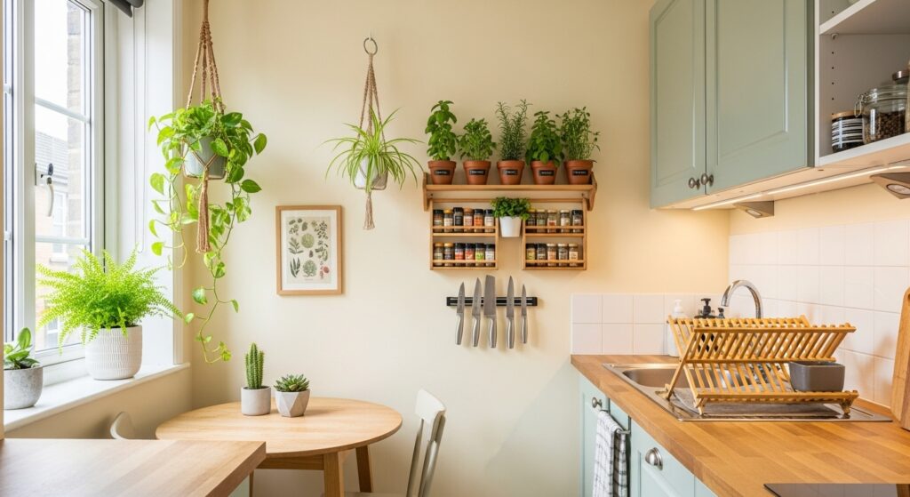 Plants can breathe life into any room, and small kitchens are no exception. Fresh greenery adds charm while purifying the air.