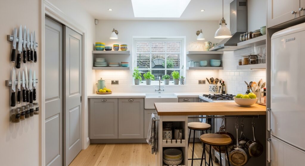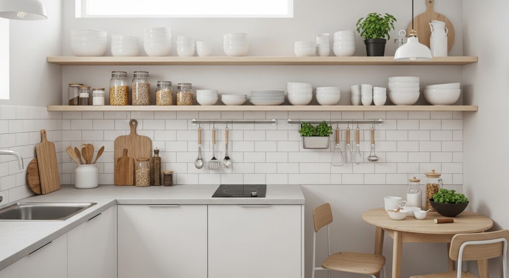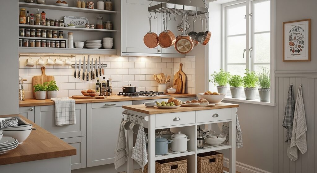 These small upgrades make your kitchen more efficient, helping you keep everything organized and within easy reach. It’s a practical way to add order and calmness to a small kitchen.