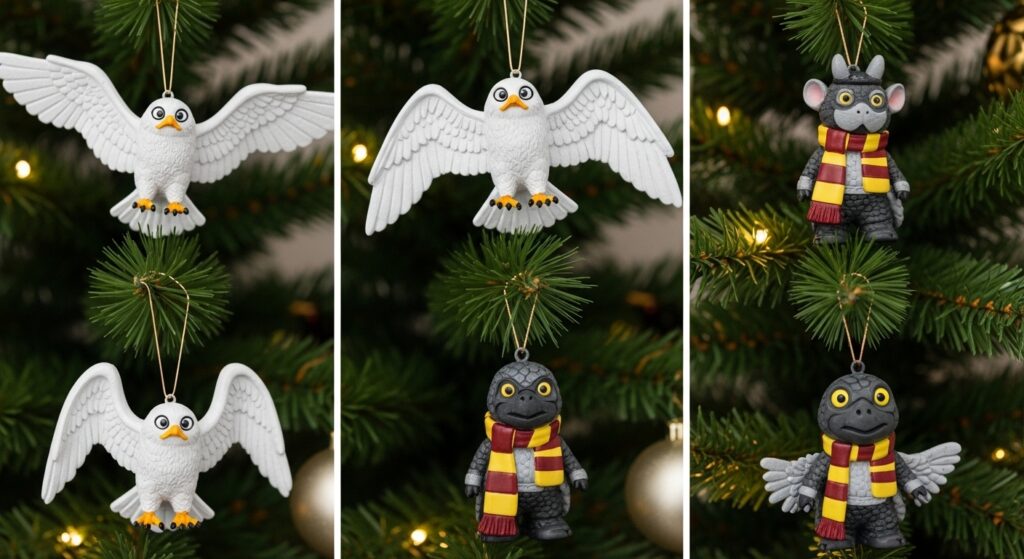 Bring the magic of Hogwarts into your home with ornaments inspired by the castle itself. Use miniature towers, tiny parchment scrolls, and castle window lights to create an enchanted theme.