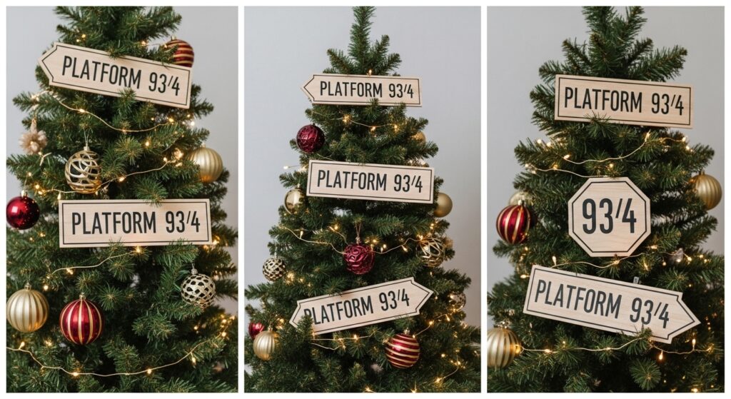 Add miniature Platform 9¾ plaques or train tickets to give your tree that true London-to-Hogwarts vibe.