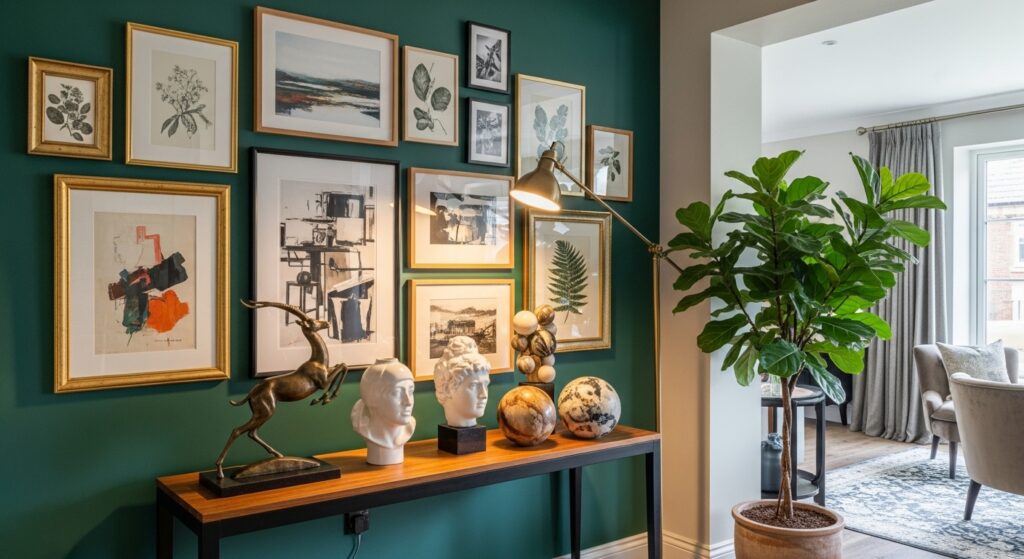 Use warm lighting or spotlights to highlight your wall décor, giving it a museum-like finish.