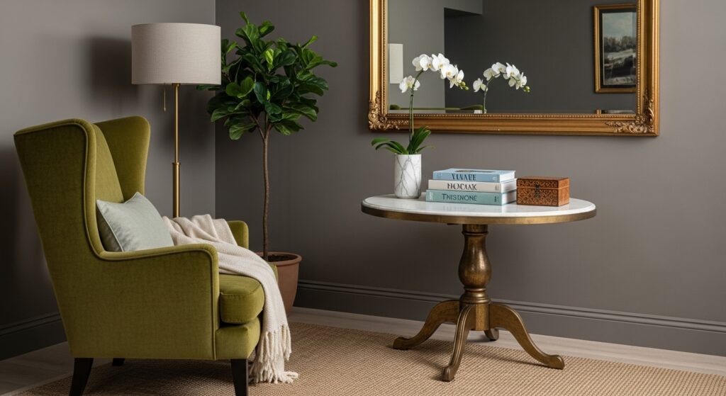 Add a small side table for your books or a cup of tea, giving your corner a cozy and lived-in feel.