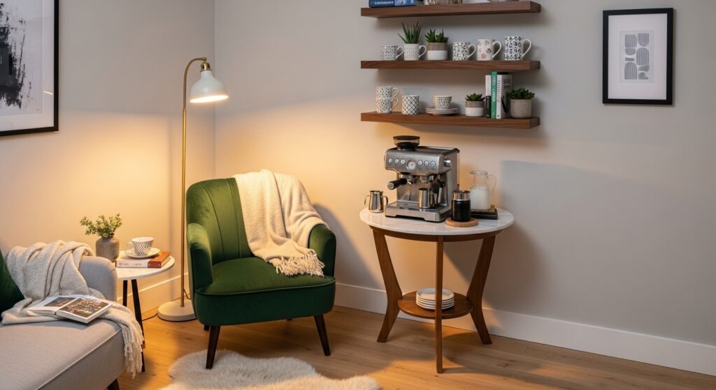 This setup adds function and charm, turning your corner into a daily happiness zone.