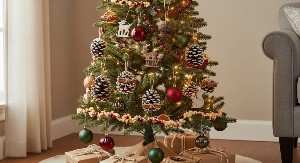 Instead of mixing random ornaments, use a coordinated set for visual harmony. Choose a theme such as rustic wood, metallic chic, or pastel glam.