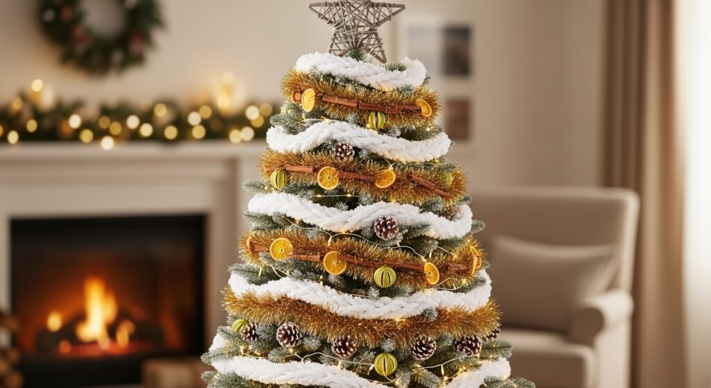 Layering garlands gives your tree that “designer” fullness while keeping it lightweight.