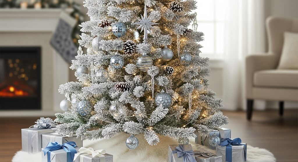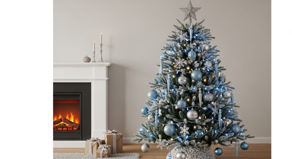 A single-color palette instantly elevates your tree. Try all-white, gold, or icy blue for a chic and unified appearance.